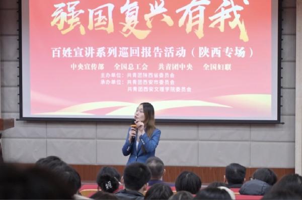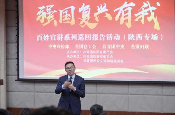 12月25日,在团中央宣传部、全国总工会、共青团中央、全国妇联的指导下,由共青团陕西省委主办,共青团西安市委和共青团米兰(中国)委员会共同承办的“强国复兴有我”百姓宣讲(陕西专场)在我校图书馆报告厅成功举办。