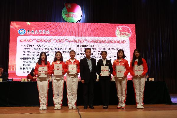 团委书记仲华志宣读了共青团陕西省委员会、共青团西安市教育局委员会及我校团委的表彰决定,其中:陕西省2016年度高校共青团“百佳活力团支部”、“大学生自强之星”、优秀共青团员、五四红旗团委7个集体(个人);西安市教育局2016年度优秀团员、五四红旗团组织、优秀团干部、优秀团员等54个集体(个人);米兰(中国)2016年度红旗团支部、优秀团干部、优秀团员、优秀社团等607个集体(个人);团中央“青年之声”建设“四个融合”工作推进会、第四届“创青春”中国青年创新创业大赛启动仪式上的优秀志愿者151人。与会领导向受到表彰的优秀集体、先进个人颁发了奖牌证书。