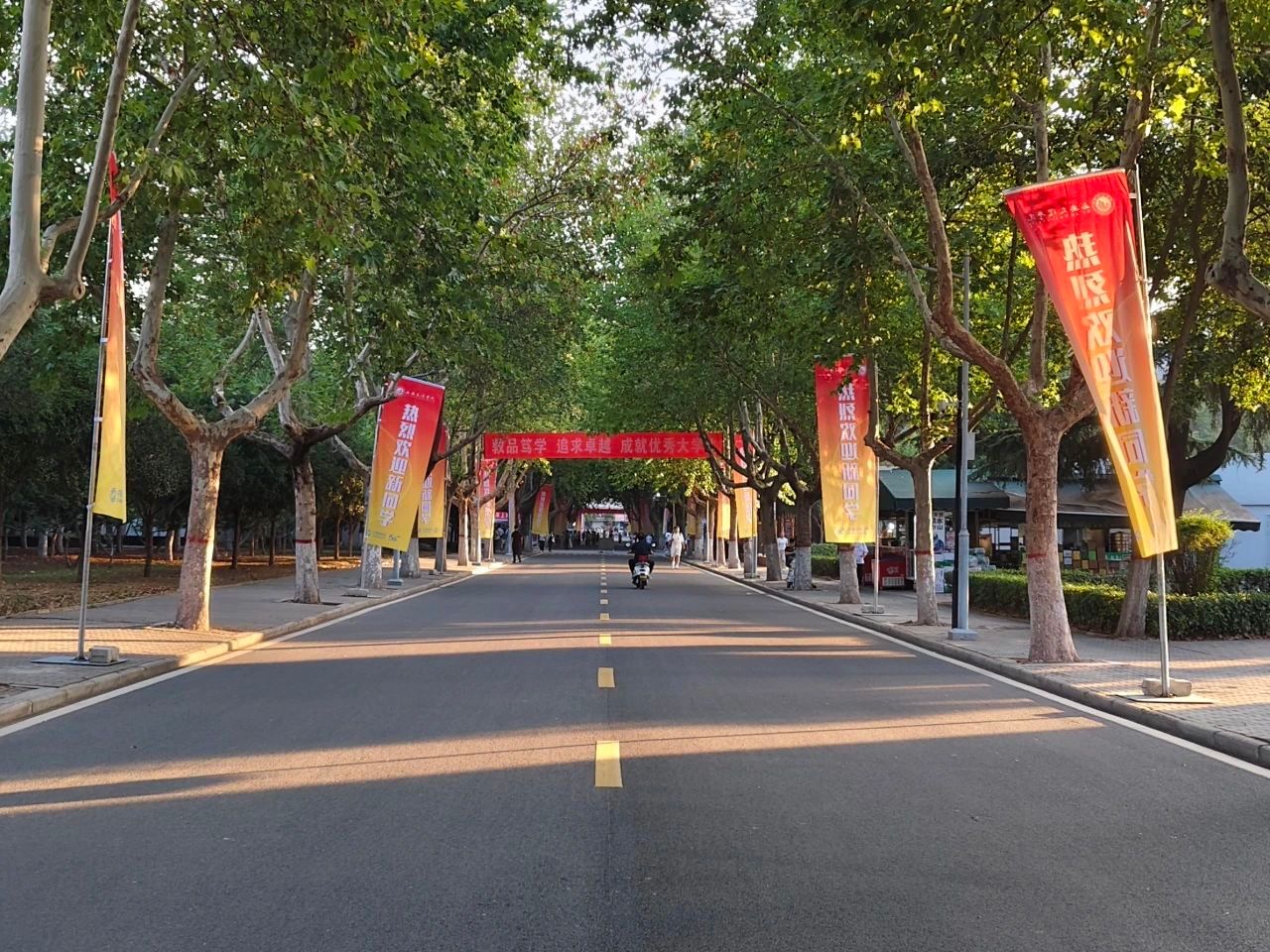 校园主干道两侧,道旗猎猎作响,暖心的指引标识、醒目的横幅与展板,瞬间将迎新的热烈氛围拉满。